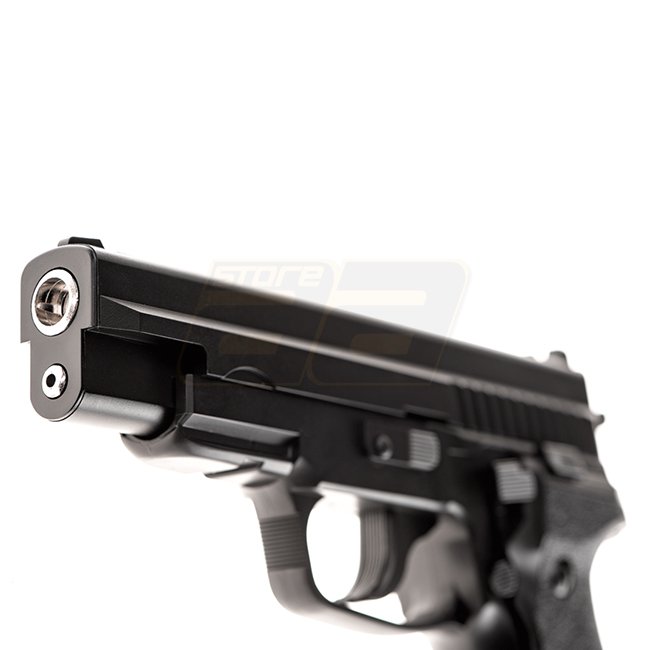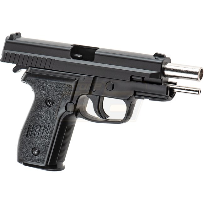 HFC P229 Federpistole - Schwarz ist eine leichte Airsoft-Waffe mit einer Magazin kapazität von 15 Schuss. Hergestellt aus ABS-Kunststoff und Metall, hat sie eine Mündungsgeschwindigkeit von 210-230 FPS und eine Reichweite von 28,81-31,55 m. Kommt mit fest