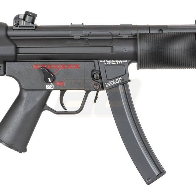 Die ICS CES SD5 AEG ist eine hochwertige Airsoft-Waffe mit einem oberen Empfänger aus Metall und einem Polymer-Schaft sowie einem Pistolengriff. Diese AEG verfügt über ein Gearbox der Version 2, einen Motor im Langformat und eine Magazin Kapazität von 230
