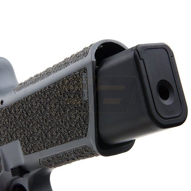 JDG P80 PFS9 RMR Cut Gas Blow Back Pistole - Grau ist eine lizenzierte Pistole, die mit TM-, WE- und AAP-01 G-Serie Magazinen kompatibel ist. Geeignet für Glock Holster, entworfen für RMR Rotpunkt-Zielvorrichtungen. Enthält hohe Eisenvisiere für die Verwe