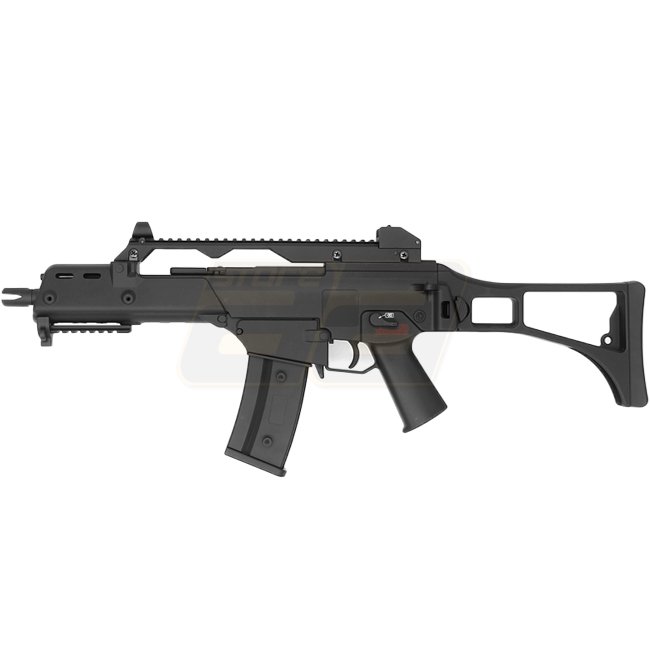 Das C steht bei der G36 Serie für „Compact“ womit die kompakte Bauweise mit dem verkürzten Lauf gemeint ist welche etwas abweicht von der typischen G36 Langversion der Bundeswehr. Die BW Version wäre dann zudem mit einem Hauptkampfvisier ausgestattet, die C Version weist an dieser Stelle eine flache Schiene in der standard 20mm Bauweise auf welche das Anbringen von eigenen Zielhilfen ermöglicht.