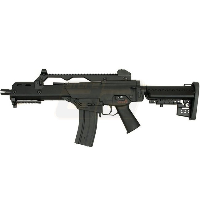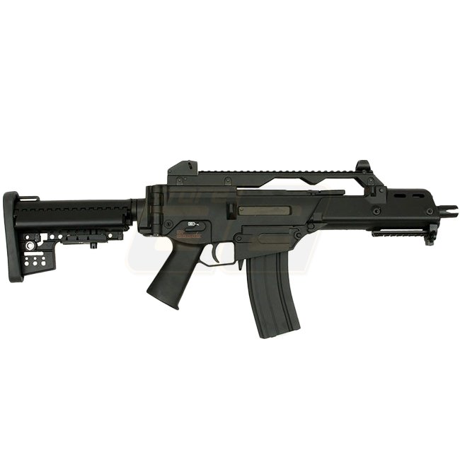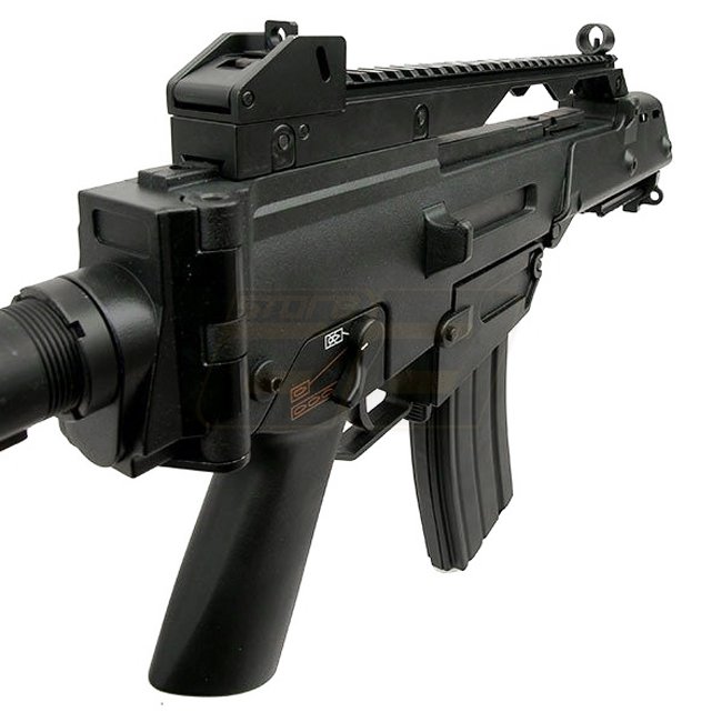 Dieses Jing Gong JG36C Operator AEG in Schwarz ist ein vielseitiges Airsoft-Gewehr mit einer Magazin Kapazität von 300 Schuss und Semi-Auto- sowie Voll-Auto-Schussmodi.