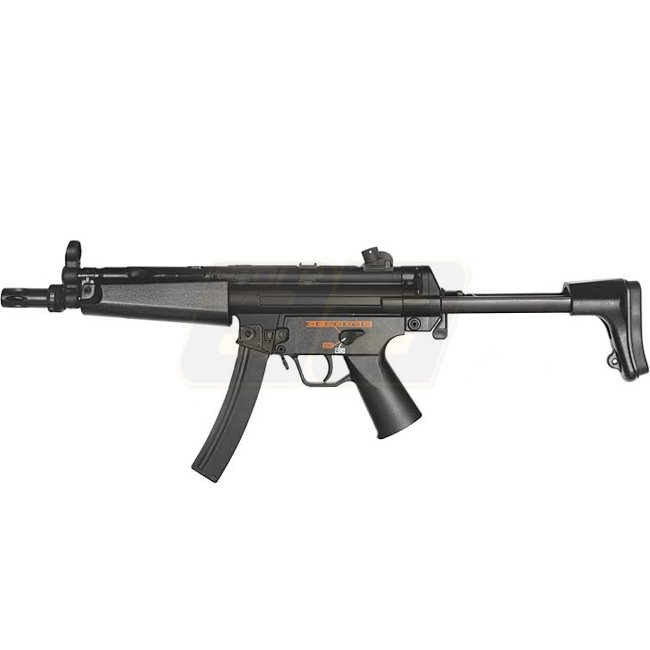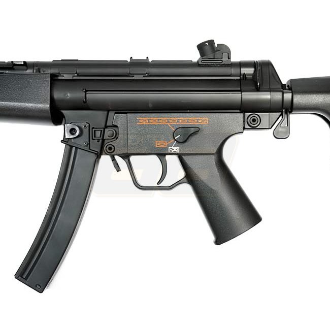 Jing Gong PM5 A5 AEG - ABS-Kunststoffgetriebe mit Long Type Motor, 200-Schuss Magazine-Kapazität, 574-724mm Länge, 1920g Gewicht. Merkmale: Geschwindigkeit von 340-360 FPS, Halbautomatik & Vollautomatik, und einstellbarer Hop Up. Enthält Gewehr, Magazin,