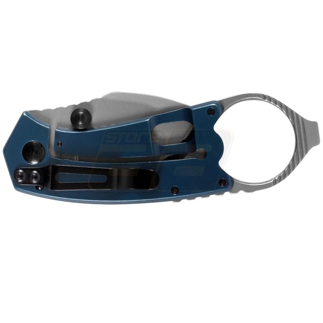 Kompakt und vielseitig, der Kershaw Antic Framelock Folder - Blau verfügt über einen übergroßen Ring für verbesserte Ergonomie und ein multifunktionales Design. Er dient doppelt als Karambit-griff mit einem flachen Schraubendreher, einem Mini-Prybar und e