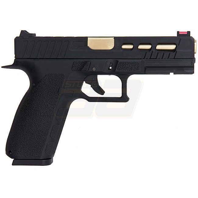 KJ Works KP-13 C Co2 Blow Back Pistole - Schwarz ist eine hochwertige Airsoft-Pistole mit einem Metall-Schlitten, Kunststoffgriff und -rahmen, einer Magazin Kapazität von 25 Schuss, einer Länge von 201 mm, einem Gewicht von 720 g und einer Innenlauf Länge