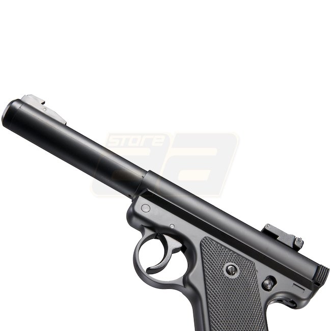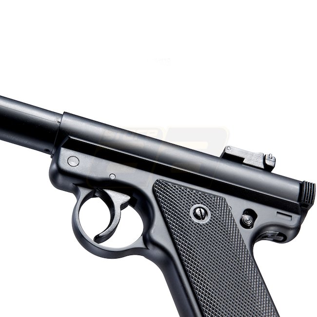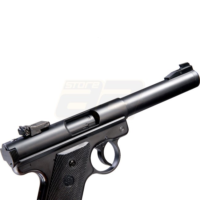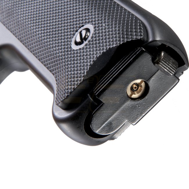 Einfache Gas Pistole ohne Blowback (Repetieren des Schlittens beim Schiessen). Dadurch können, je nach verwendetem Gas, Schussleistungen von bis zu 420 FPS erzielt werden und die Leistung ist konsistenter. Auch reicht eine Gasladung länger da der Verbrauch geringer ist.