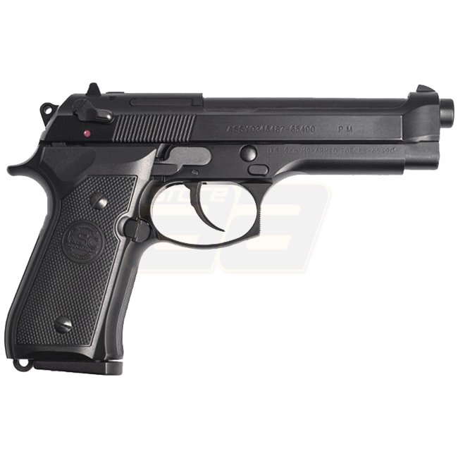 KSC M9 US Military Full Metal GBB - Metallkonstruktion mit Kunststoffgriff. 24-Schuss-Magazin, 210 mm Länge, 1070 g Gewicht, 107 mm Innenlauf. Mündungsgeschwindigkeit von 310-330 FPS, Schussreichweite von 42,53-45,27 m. Halbautomatischer Schussmodus mit