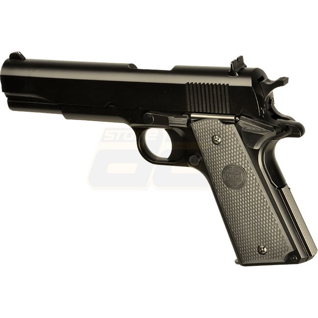 KWC M1911 Federpistole - Schwarz ist eine langlebige und realistische Airsoft-Pistole, perfekt für Gefechte oder Zielübungen. Diese Pistole zeichnet sich durch eine Konstruktion aus ABS-Kunststoff und Metall, ein 10-Schuss-Magazin und ein festes Hop-Up-Sy