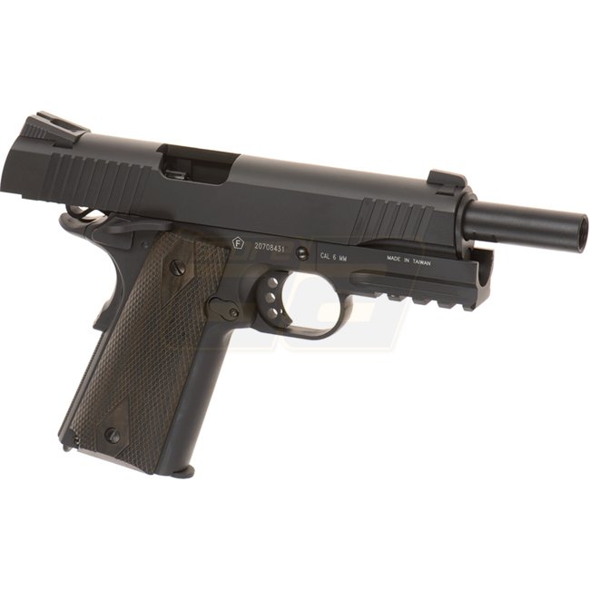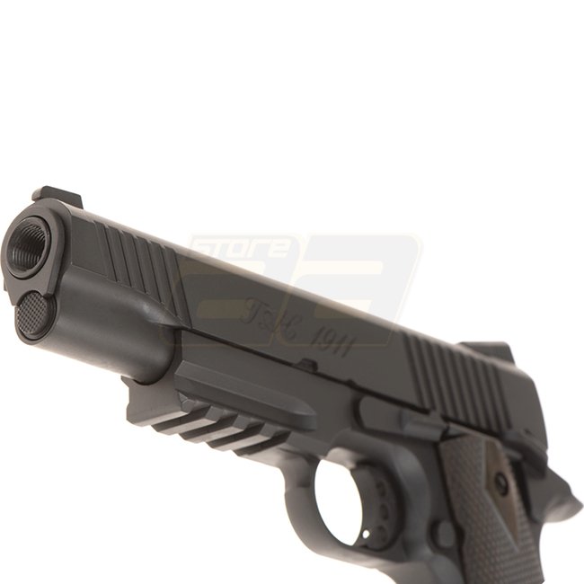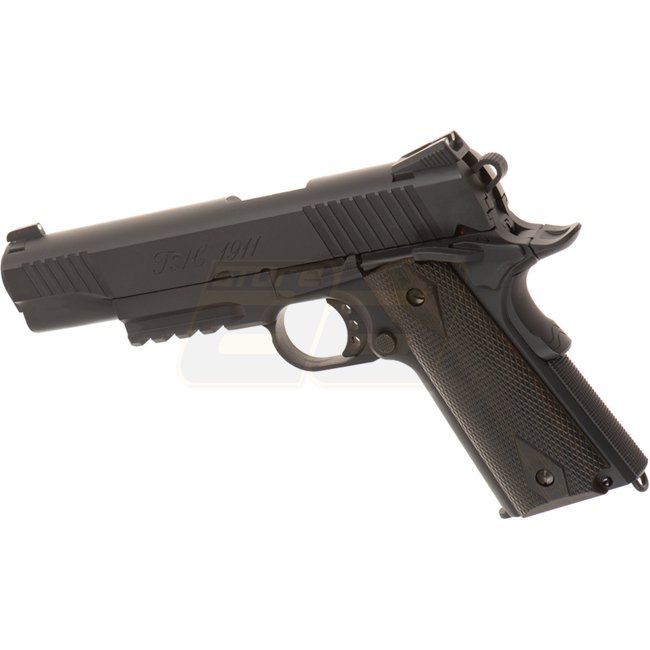 KWC TAC 1911 Co2 Blow Back Pistole - Schwarz: Metall/Kunststoffgriff, 16 Schuss Magazinkapazität, 220 mm Länge, 910 g Gewicht, 110 mm Innenlauf, 300-320 FPS Geschwindigkeit, Halbautomatisch, 41,16-43,90 m Reichweite, einstellbares Hop Up. Enthält Waffe un