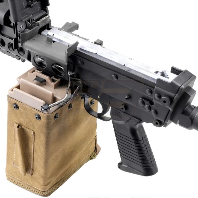 Hochwertige Lambda Defence MK48 Mod.1 PARA AEG mit Metallgetriebe und Polymergriff/-schaft. 5000 Schuss Magazin Kapazität, einstellbares Hop-Up, Reichweite von 46,65-49,39 m und Mündungsgeschwindigkeit von 340-360 FPS. Ideal für Airsoft-Enthusiasten.