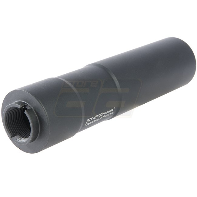 Hochwertiger metallischer Dummy-Schalldämpfer für AK-Modelle von LCT. DTK-4P-Design, 186 mm Länge, 45 mm Durchmesser, 370 g Gewicht. 24 mm+ CW-Gewinde.