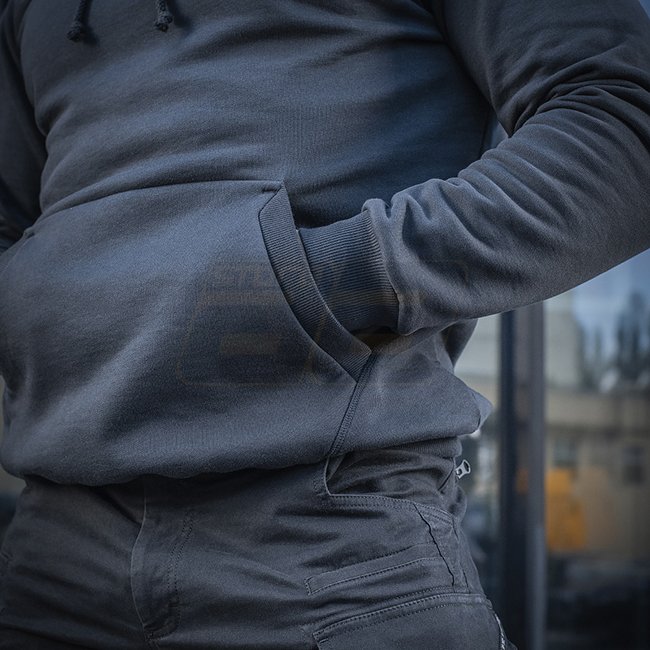 Aus 100% Baumwolle ist er angenehm zu tragen, schwitzt nicht und ist leicht zu reinigen. Die Raglanärmel sind so geschnitten, dass sie eine ungewöhnliche Schulterform erreichen. Dadurch entsteht eine stilvolle, abgerundete Silhouette. Die lockere Passform des Hoodies schränkt die Bewegung bei körperlicher Aktivität nicht ein. Die Kängurutasche hat eine markante Trapezform, um Ihre Hände warm zu halten. Die angenehm weiche Kapuze bietet hervorragenden Schutz vor Wind und schlechtem Wetter. Rippbündchen an Ärmeln und Taille halten die Form und verhindern das Eindringen kalter Luft.