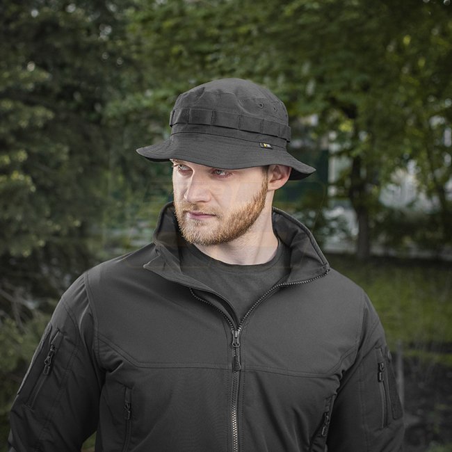 Der Panama Boonie Ripstop, inspiriert vom legendären amerikanischen Boonie-Modell. Schnitt mit halbstarrer Krempe. Die Krone hat ein um den Umfang genähtes Band, das dazu bestimmt ist, zusätzliche Tarnungsgegenstände zu befestigen. Ausgestattet mit einer Kinnschnur, um den Boonie an Ort und Stelle zu halten. Eingearbeitete Ösen sorgen für Belüftung.