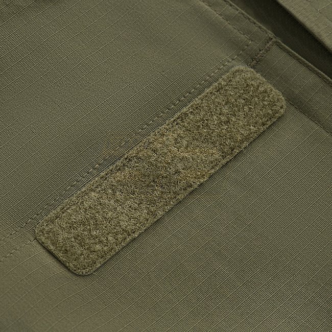 Im oberen Teil des Rückens befindet sich eine verstärkte Passe mit Klettverschluss für einen IR-Marker unter dem Kragen, Dehnfalten um die Arme sorgen für Bewegungsfreiheit, auch wenn ein Schutzweste getragen wird. Die Ärmel sind mit einer Ellbogentasche für eine weiche Einlage ausgestattet. Die Ärmelbündchen sind durch Klettverschlüsse in der Weite verstellbar.