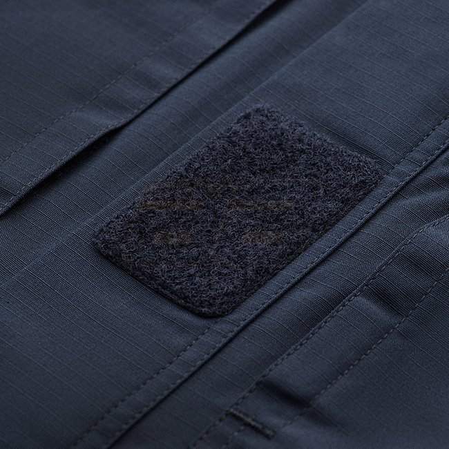 Die M-Tac Patrol Flex Jacke in Dunkelblau XL Lang bietet Komfort und Funktionalität. Zu den Eigenschaften gehören ein Stehkragen mit Klettverschluss, zentraler Reißverschluss, versteckte Brusttaschen und Klettflächen für Patches. Die Belüftung ist durch Ö
