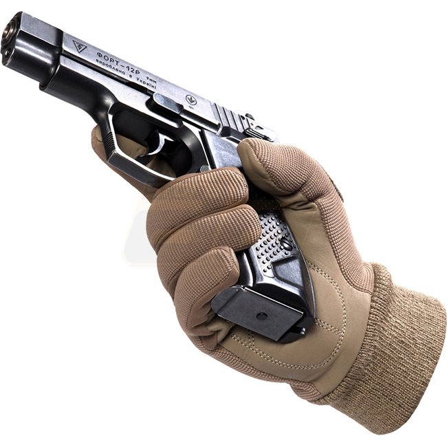 M-Tac Taktische Sturmhandschuhe Mk.8 in Khaki, entwickelt für Sicherheitsdienste mit verstärkter synthetischer Handflächenpolsterung zur Verletzungsprävention und gutem Griff bei nassen Bedingungen. Elastische Bündchen für eine perfekte Passform. Polyeste