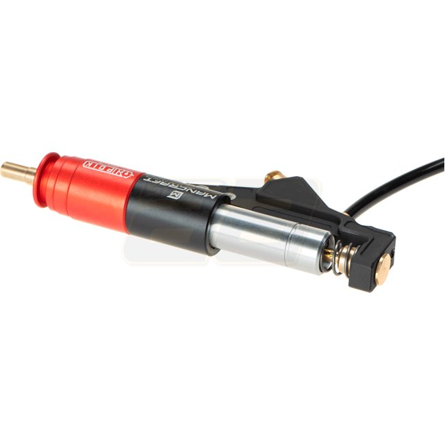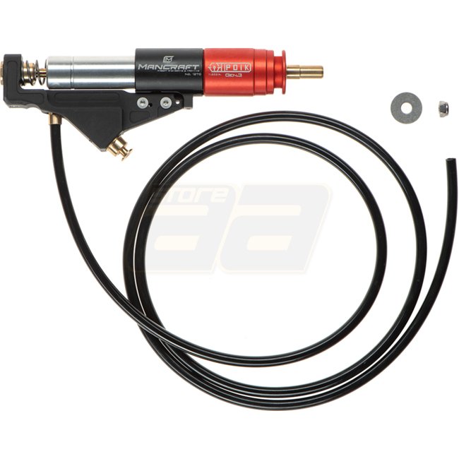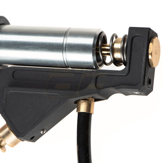 Das Umrüstkit hat eine unabhängig bewegliche Düse – genau wie bei den AEG-Gewehren. Die Position der Düse ist nicht direkt mit der Position des Gaszufuhrelements verknüpft. Diese Lösung sorgt dafür, dass – wenn die Umrüsteinheit einen Schuss abgibt (wenn das Gas beginnt, sich in Richtung der Kugel zu bewegen) die Düse in der Hop-Up-Kammer stationär ist. Aus diesem Grund ist hier eine bessere Fokussierung und Präzision des Schusses möglich.