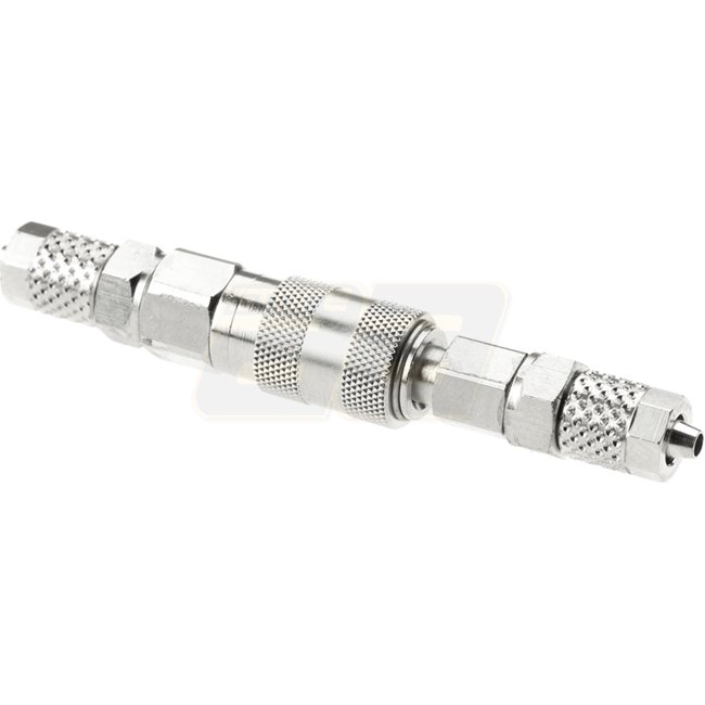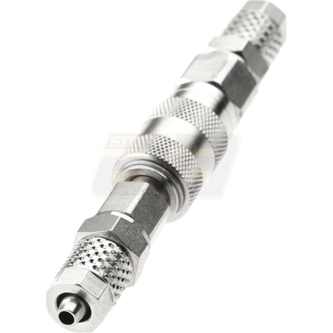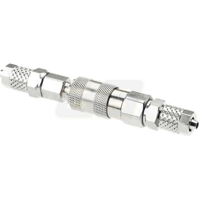 Schnelles Einweg-Absperrventil für fi 4mm Schlauch. Luftversorgung einfach abstellen, ohne die Gasversorgung zu beeinträchtigen oder den Regler zu entfernen. Passt zu MICRO- männlichen und weiblichen Steckverbindern. Kleine Größe: fi 10mm, L 65mm.