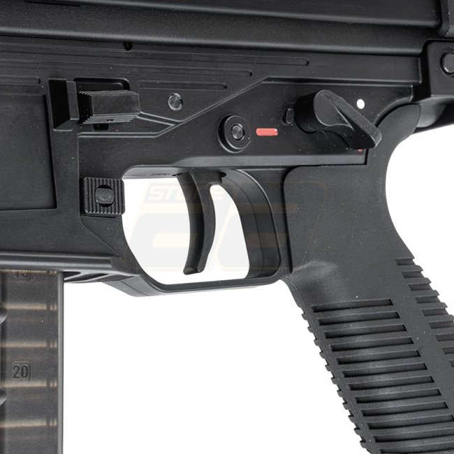- Beidseitige Bedienelemente: Ladehebel, Verschlussfreigabe, Magazinfreigabe und Feuerwahlschalter