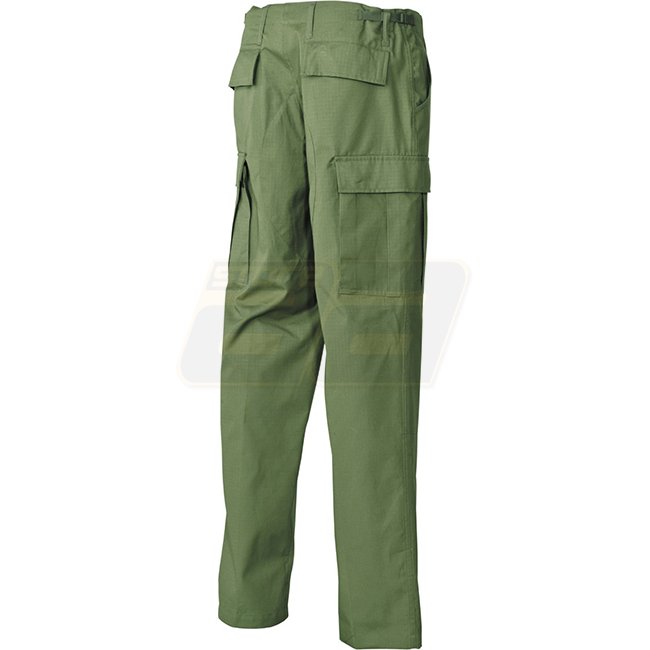 Klassische US Army BDU Kampfhosens im Ripstop-Olivgrün, Größe 3XL. Hergestellt aus 100% Baumwolle, mit Knopfleiste, mehreren Taschen, verstellbarem Bund, verstärkten Knien und Gesäß sowie verstellbarem Saum. Ideal für Aktivitäten im Freien und militärisch