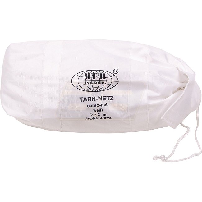 MFH Camouflage-Netz 2 x 3 m - Weiß. Camouflage-Netz: 100% Polyester. Metallringe in den Ecken. Transporttasche enthalten.