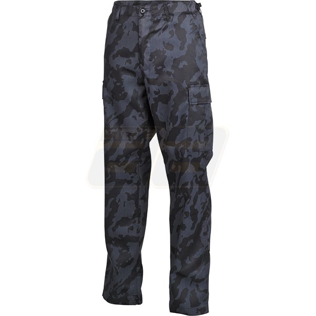 Klassische US-ARMEE-Hosen, MFH US Combat Pants in Nachtsicht-Camo-Farbe, Größe 3XL. Frontreißverschluss, mehrere Taschen, verstellbarer Bund und breite Gürtelschlaufen. Perfekt für Outdoor-Aktivitäten. Material: 65% Polyester, 35% Baumwolle.