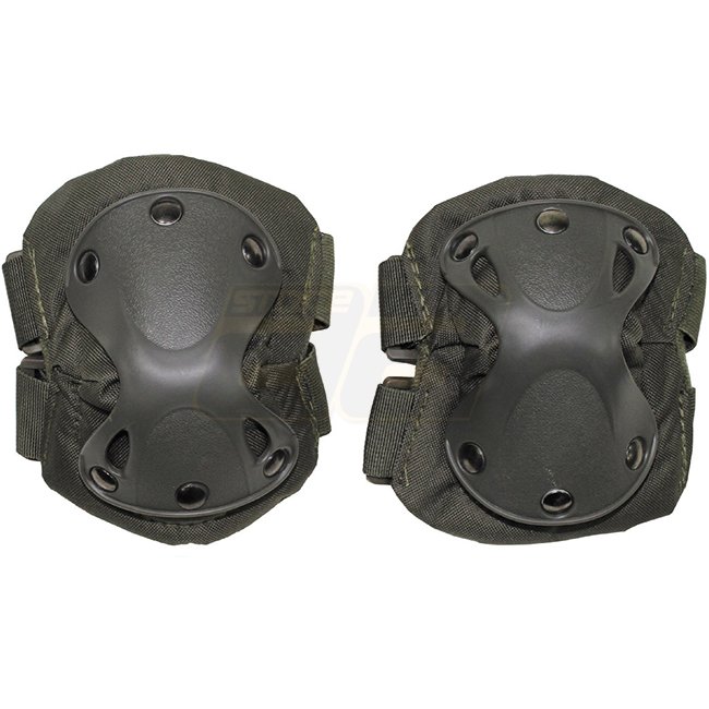 MFHHighDefence Ellenbogenschützer - Oliv: Flexibles, weiches Fleece-Futter für Komfort, elastische Riemen mit Klettverschluss. Abmessungen: ca. 16 x 11 cm. Material: 100% Polyester außen, 100% Ethylenvinylacetat (EVA) Polsterung.