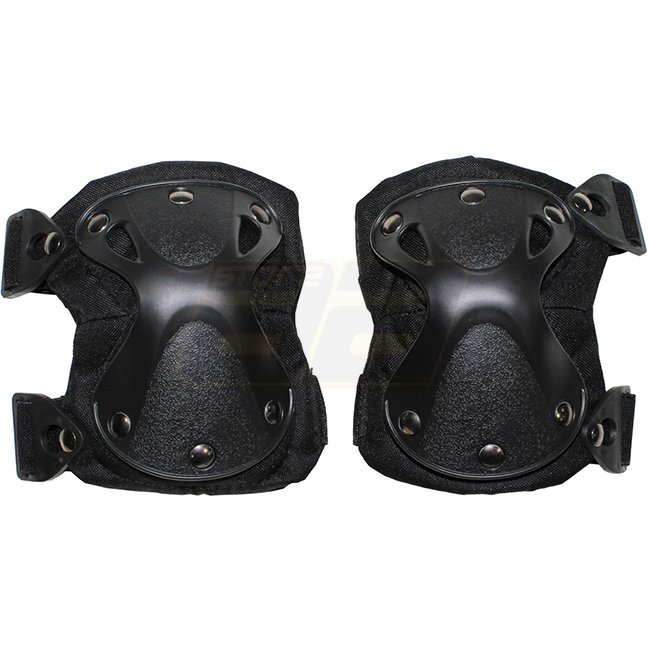 MFHHighDefence Knieschützer - Schwarz: Flexible Knieschützer mit weichem Fleece-Innenfutter für hohen Tragekomfort. Verstellbare Breite mit Haken- und Ösenverschluss, elastischen Riemen und Klettverschluss. Abmessungen: ca. 18 x 13 cm. Materialien: Außen