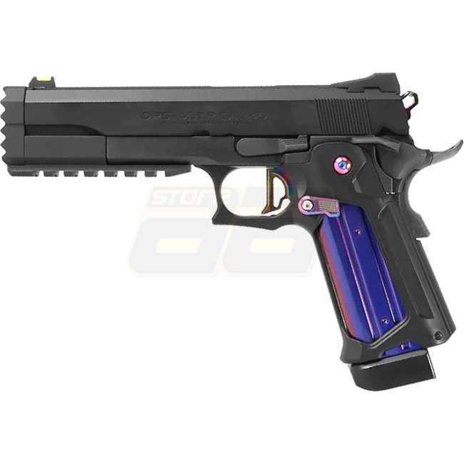 Die Nine Ball Marui Hi-Capa 5.1/4.3 GBB verfügt über einen schlanken Wolf Grey Skeleton Grip für Stil und Präzision. Ideal für Wettkampfschützen, die höchste Leistung suchen.