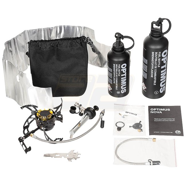 Original Kocher-Set der Spezialkräfte der Bundeswehr für den ganzjährigen Einsatz NSN: 7310-12-396-8107 Betrieb mit Reinbenzin, Petroleum, Diesel, bleifreiem Benzin oder Kerosin Set besteht aus: Optimus Nova Multifuel Kocher mit Schlauch und Pumpe 2 Brennstoffflaschen (0,6 l und 1,0 l) 21-teiliges Ersatzteilset Multitool Windschutz/ Kocherunterlage (ca. 15 x 80 cm) Transporttasche mit Reissverschluss und Kordelzug Netzbeutel mit Kordelzug Anleitung Leistung: 2850 W Kochzeit: für 1 Liter Wasser ca. 3,5 min Masse Kocher: ca. 140 û 80 û ù 65 mm Gesamtgewicht: ca. 1,15 kg