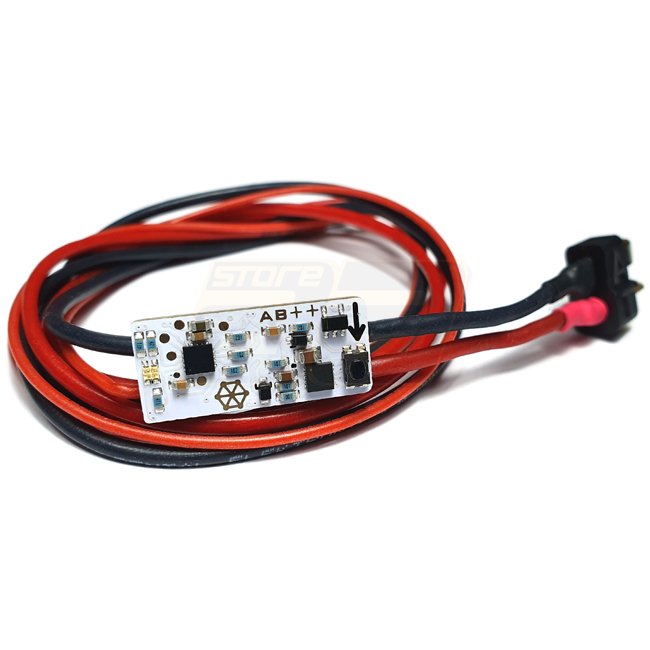AB++ ist ein On-Wire-MOSFET mit einem speziellen Hochleistungstransistor, der den Strom von der Batterie direkt an den Motor überträgt, anstatt anfälliger mechanischer Schalter. Das verlängert die Lebensdauer erheblich und senkt den Gesamtwiderstand, was zu einer zuverlässigeren Replik mit einer höheren Feuerrate führt, die Sie länger schießen können, ohne die Batterie zu wechseln. Es gibt dem Nachbau auch viele zusätzliche Funktionen, die die Möglichkeit geben, eine optimale Konfiguration für die Anforderungen des Einsatzes zu wählen und sich einen Vorteil gegenüber dem Gegner zu verschaffen.