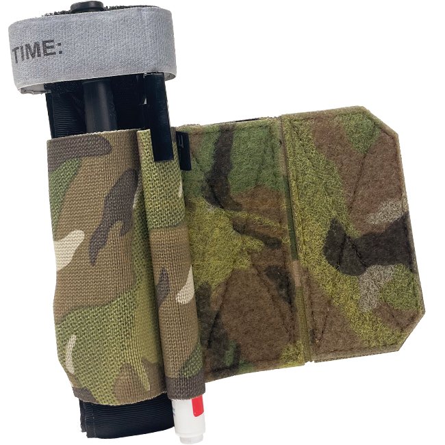 Organisieren Sie Ihre Tourniquet-Essentials mit dem Pitchfork Klettverschluss-TQ-Einsatz 2.0 - Multicam. Passt sicher zu verschiedenen Tourniquet-Designs mit zusätzlichen Funktionen wie Stifthalter und Schneideschlitz. Ideal zum Befestigen an Pitchfork Ba