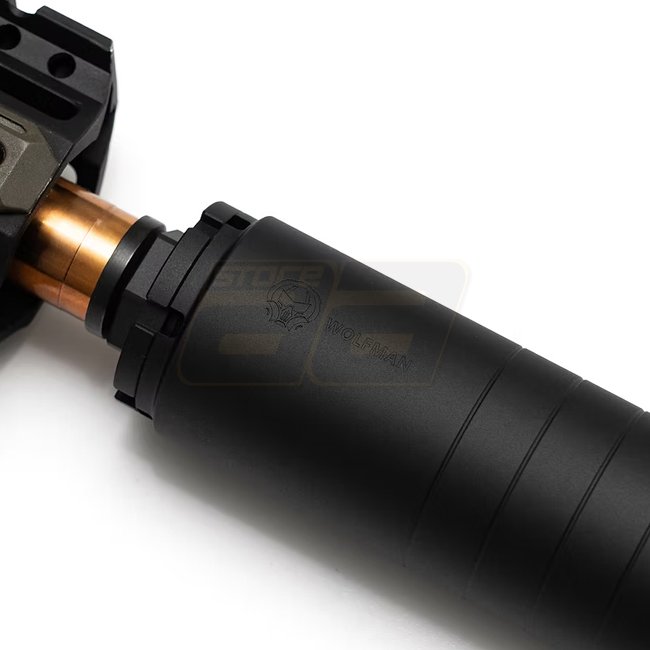 Gefertigt aus robustem Aluminium sorgt der Wolfman Mock Suppressor für Langlebigkeit bei gleichzeitig geringem Gewicht. Seine präzise Verarbeitung garantiert eine saubere Passform an kompatiblen Mündungsaufsätzen.