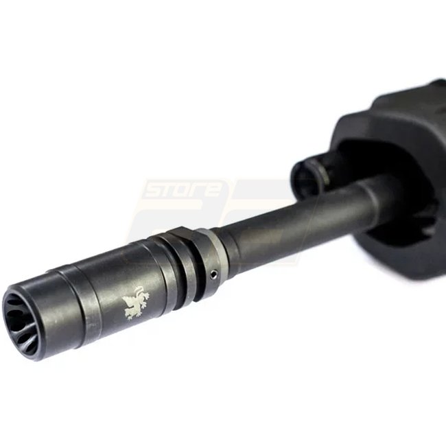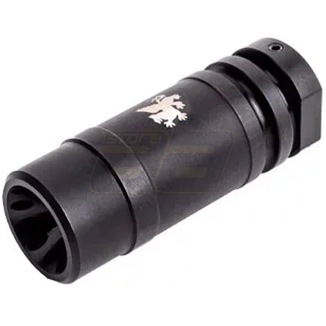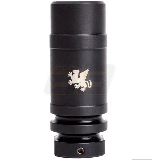 Die Griffin Armament M4SD Linear Comp ist die einzige Mündungsvorrichtung von Griffin Armament, die keine seitlichen Öffnungen aufweist. Stattdessen verfügt es über drei Öffnungen auf der Oberseite für Mündungsneutralität sowie eine de Laval-Düse auf der Vorderseite, um einen linearen Druckfluss auf die Entfernung zu erzeugen. Die Airsoft-Version wurde so konzipiert, dass sie mit jeder A2-kompatiblen Schalldämpferhalterung kompatibel ist, einschließlich des PTS Griffin Armament M4SD Suppressor. |