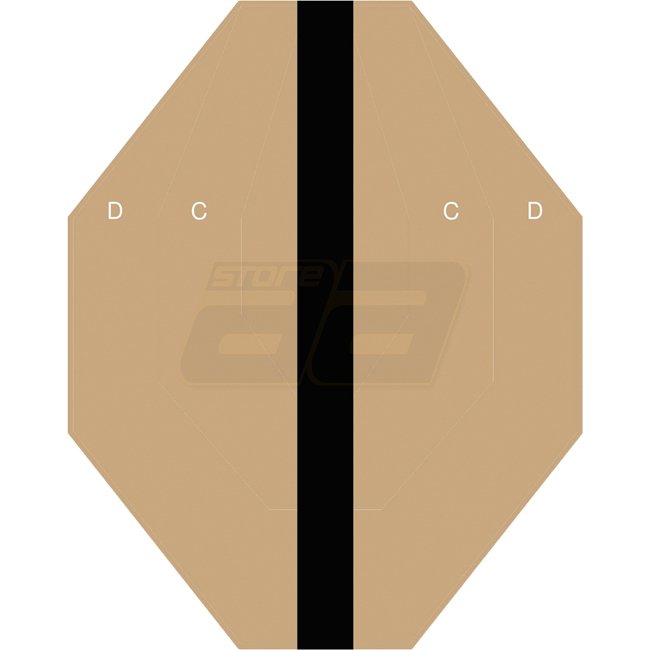 Die Abmessungen der IPSC Hard Cover Schießziele entsprechen den IPSC Vorschriften und den Hard Cover Konstruktionen. Die schräge Blackbox stellt ein Hard Cover dar. Die Scheiben werden auf 80 g Offsetpapier gedruckt, was sie billiger macht, weniger Platz beanspruchen lässt und einfacher zu transportieren macht als Kartonziele. Die Linien, die die Zonen A, C und D trennen, sind dünn genug, um aus einer Entfernung von 10 m unsichtbar zu sein, wie bei einem Pappziel. Nachdem man sich Schild genähert hat, kann leicht zwischen Treffern unterscheiden werden.