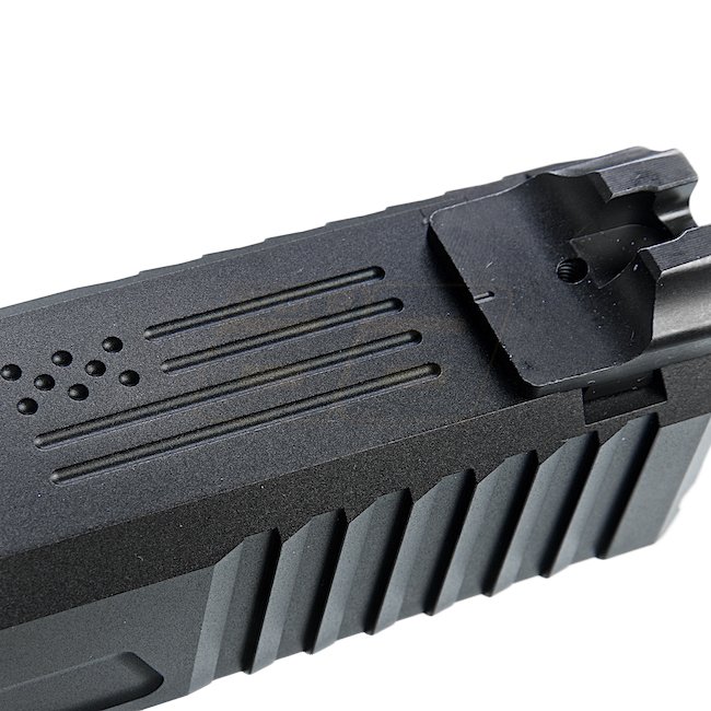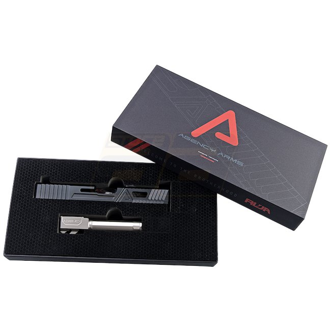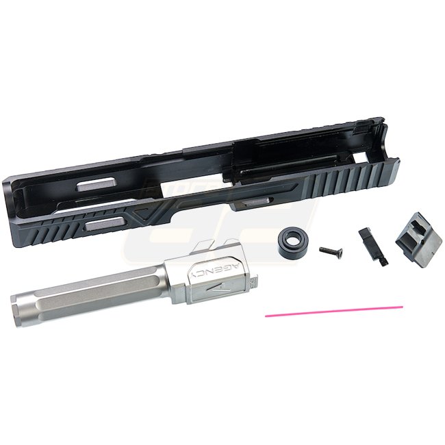 RWA Agency Arms Urban Combat 19 Slide Set umfasst Schlitten, Lauf, Vorder-/Hintervisiere, Auszieher und Faseroptik. Für Tokyo Marui G19 GBB-Pistole. GBB-Pistole nicht enthalten.