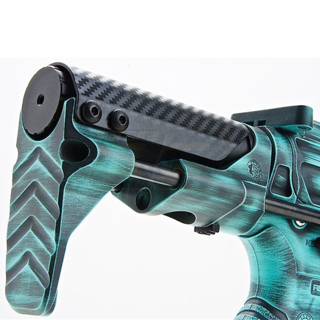 RWA Battle Arms Development 556-LW AEG Umi Edition in auffälligem Cerakote Robins Egg Blue Battleworn Finish. Ausgestattet mit RWA Edition GATE Aster MOSFET, langem Motor, 120 Schuss Magazin-Kapazität und verstellbarem Hop-up.