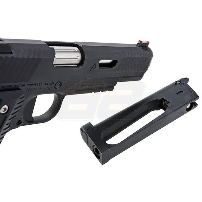 RWA Nighthawk Custom AGENT 2 Co2 Blow Back Pistole Stahlversion - Schwarz: Hochwertige Metall/Polymer-Konstruktion mit 25-Schuss Magazin. Semi-Auto-Schussmodus, einstellbares Hop-Up und Schussreichweite von 41,16-43,90m. Im Paket enthalten sind die Waffe