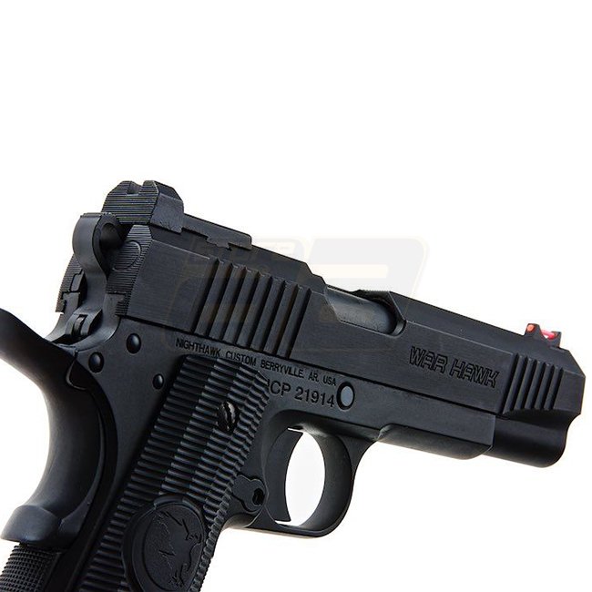 RWA Nighthawk Custom War Hawk Gas Blow Back Pistole Non-Rail Sonderausgabe - Schwarz: Authentische Metallkonstruktion, 21 Schuss Magazin Kapazität, 250mm Länge, 910g Gewicht, 280-300 FPS Geschwindigkeit, Halbauslösung, verstellbarer Hop Up für präzises Sc