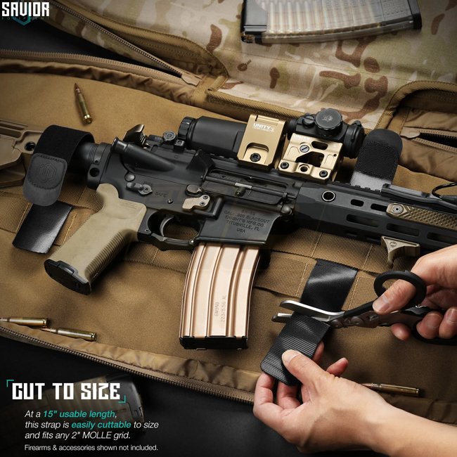 Nicht ausfransende, schneidbare Straps für MOLLE-Schlaufen (Klettrücken). Zwei Stück im Lieferumfang.
