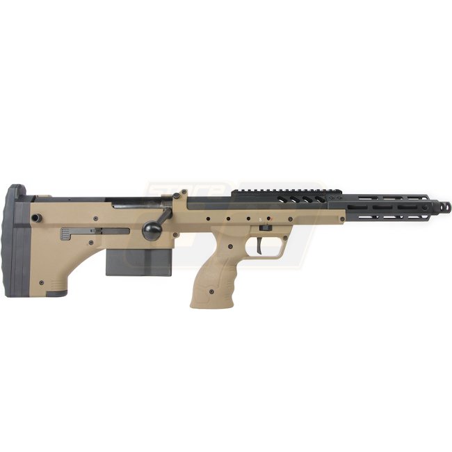 Silverback Desert Tech SRS A2/M2 Covert 16 Zoll Rechts - Dunkelbraun - Federmechanismus, Metall/Nylon Schaft, 25-Schuss Magazin, einstellbares Hop-Up. 708mm Länge, 2350g Gewicht, 406mm Innenlauf Länge. Mündungsgewinde 14mm-/CCW, 330-350 FPS. Einzelfeuer-M