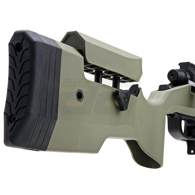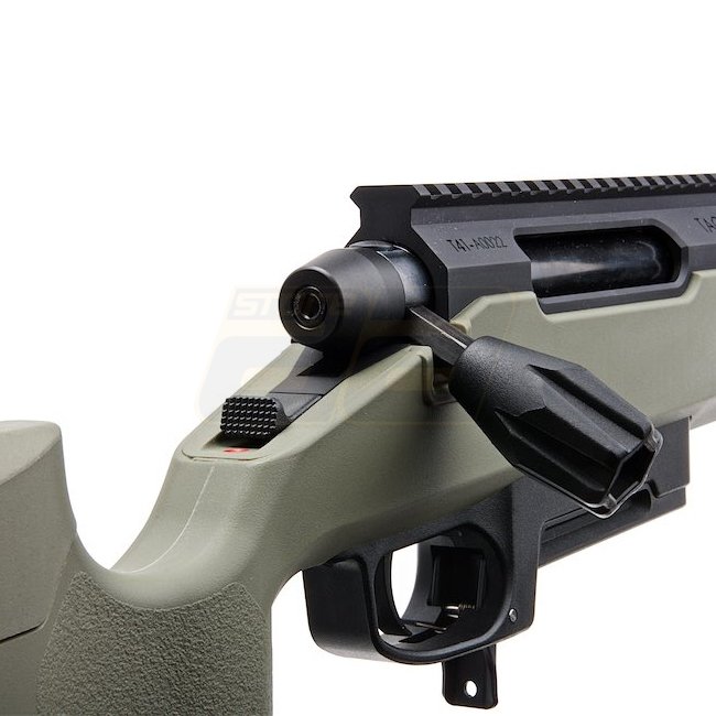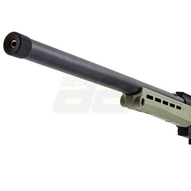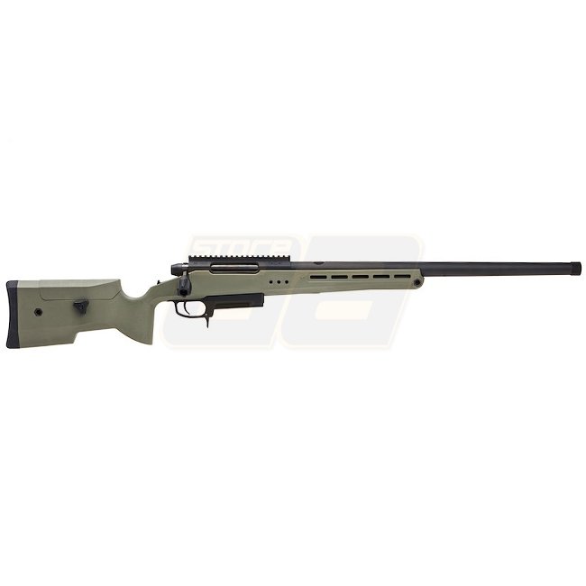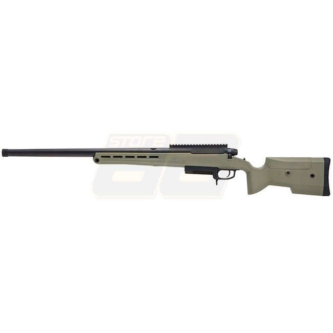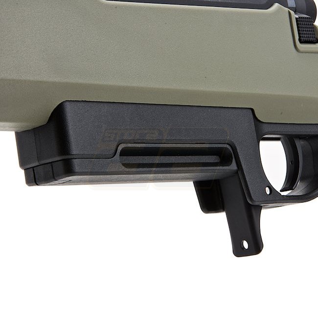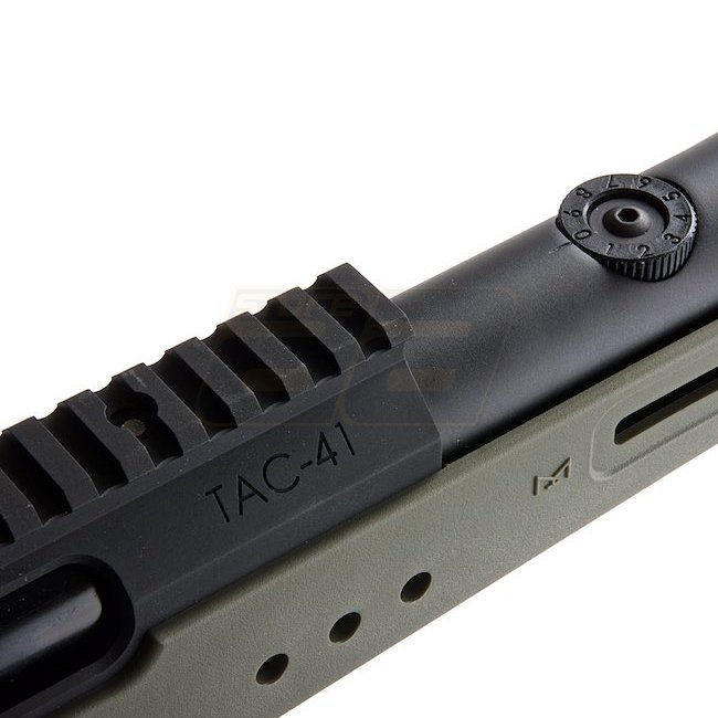 Silverback TAC-41 Repetiergewehr - Oliv. Metall / Nylon-Schaft, 48-Schuss Magazin, 1090 mm Länge, 2730 g Gewicht, 510 mm Innenlauf, 24 mm+ Mündungsgewinde, 370-390 FPS Geschwindigkeit, Einzelfeuer, 50,76-53,51 m Schussreichweite. Einstellbares Hop Up. Ink