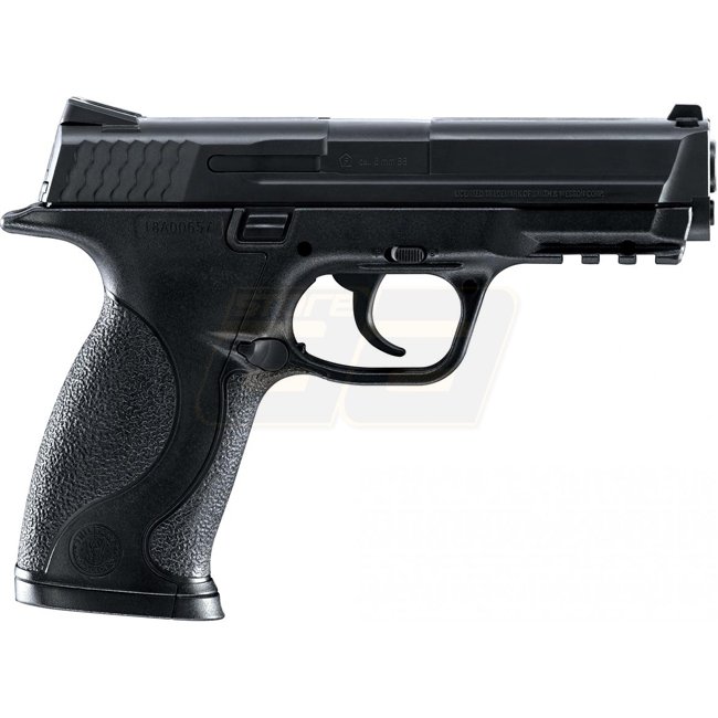 Smith & Wesson M&P40 Co2 Non Blow Back Pistole - Schwarz. Metall- und Kunststoffkonstruktion, 15-Schuss Magazin, 196 mm Länge, 530 g Gewicht, 87 mm Innenlauf Länge, 430-450 FPS Geschwindigkeit, Semi-Auto-Schussmodus, einstellbares Hop-Up. Paket enthält Wa