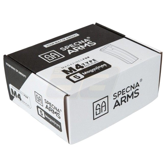 Hochwertiges Set von 5 Specna Arms M4 Metallmagazinen in stilvollem Grauton. Jedes Magazin hat eine Kapazität von 120 Kugeln und ist kompatibel mit M4/M16 AEG-Gewehren. Robuste Konstruktion sorgt für zuverlässiges Füttern und müheloses Nachladen.