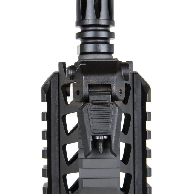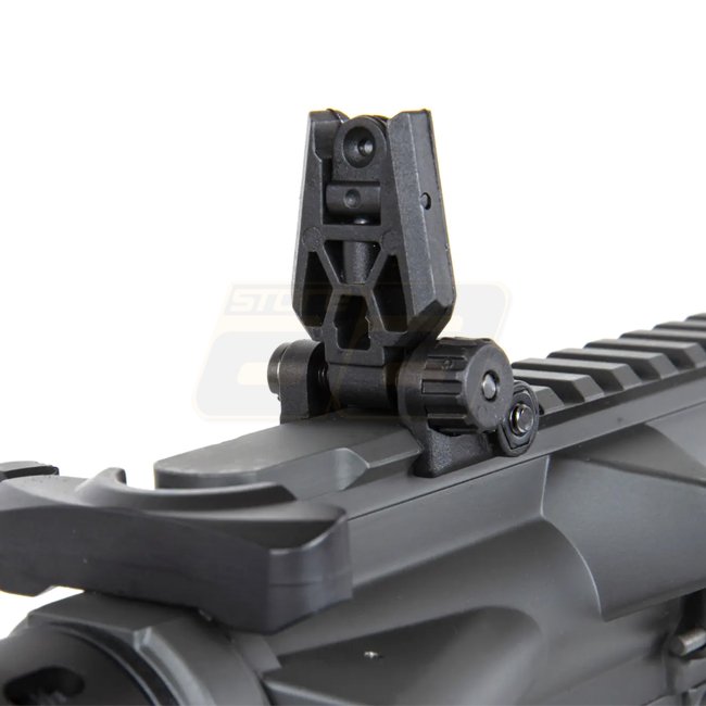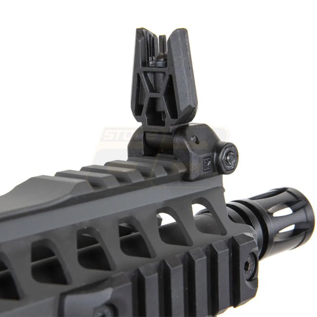 Moderne, kurze AR-15 mit M-Lok Handschutz und bequemem Specna Arms Light Ops Stock.