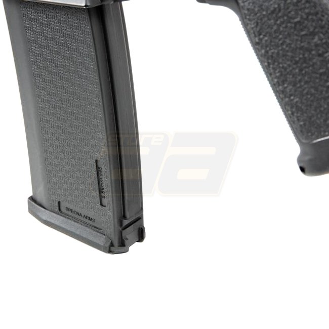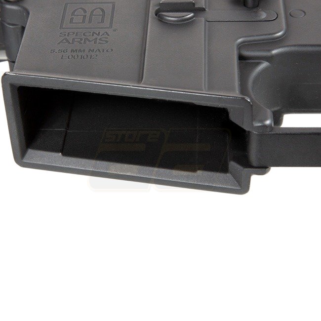 Die Modelle der Specna Arms EDGE E-Serie verfügen über ein nanobeschichtetes Metall Gehäuse. Im Innern sorgt eine robuste "ORION“ Gearbox für Zuverlässigkeit und Flexibilität, da diese mit dem "ESA“ Federschnellwechselsystem ausgestattet sind. Dadurch lässt sich die Leistung mit nur wenigen Handgriffen verändern. Des Weiteren ist die Gearbox bereits mit einem GATE X-ASR Mosfet ausgestattet. Die verbauten Teile erlauben die Verwendung unterschiedlich starker Federn (bis M140). Der 6.03mm Innenlauf kombiniert mit einer Präzisions-HopUp Unit mit umlaufendem Einstellrad sorgt für die nötige Präzision. Specna Arms liefert neben der ab Werk verbauten Feder eine zusätzliche M90 Feder mit, womit sich die Leistung der AEG auf ca. 310 FPS reduzieren lässt.