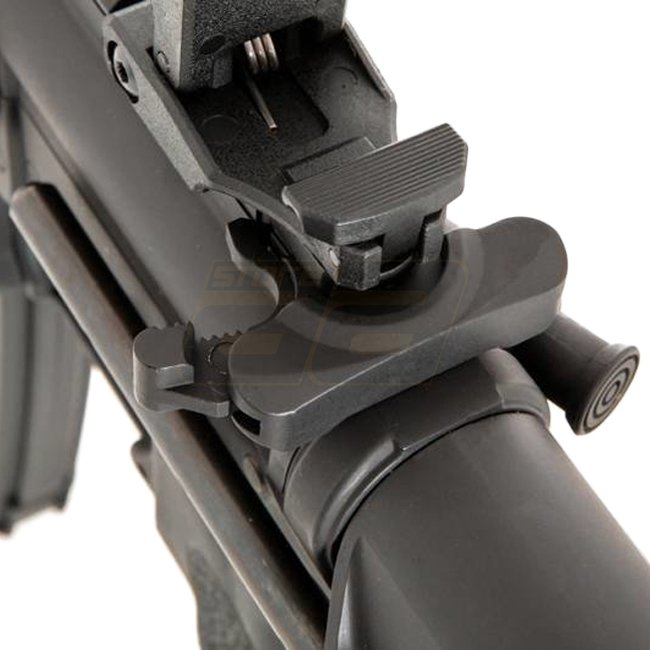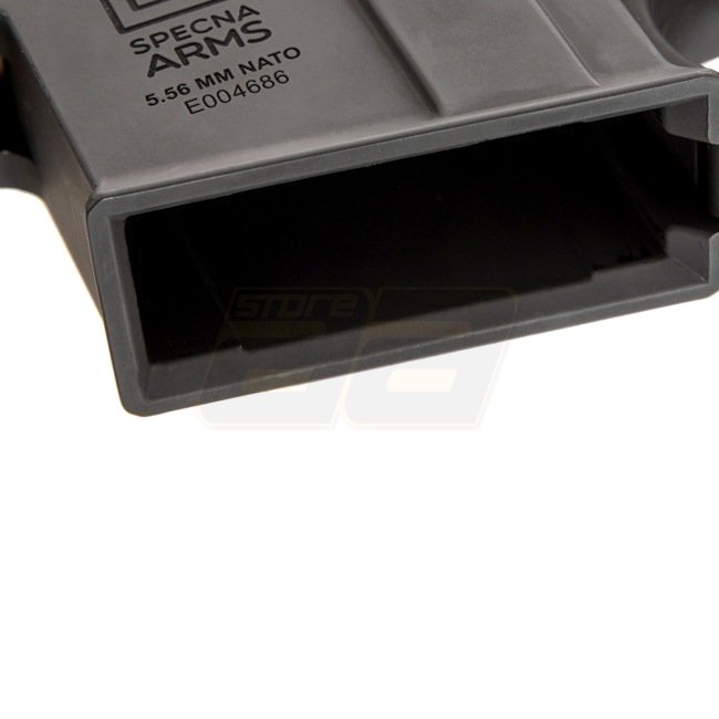 Die Modelle der Specna Arms EDGE E-Serie verfügen über ein nanobeschichtetes Metall Gehäuse. Im Innern sorgt eine robuste "ORION“ Gearbox für Zuverlässigkeit und Flexibilität, da diese mit dem "ESA“ Federschnellwechselsystem ausgestattet sind. Dadurch lässt sich die Leistung mit nur wenigen Handgriffen verändern. Des Weiteren ist die Gearbox bereits mit einem GATE X-ASR Mosfet ausgestattet. Die verbauten Teile erlauben die Verwendung unterschiedlich starker Federn (bis M140). Der 6.03mm Innenlauf kombiniert mit einer Präzisions-HopUp Unit mit umlaufendem Einstellrad sorgt für die nötige Präzision. Specna Arms liefert neben der ab Werk verbauten Feder eine zusätzliche M90 Feder mit, womit sich die Leistung der AEG auf ca. 310 FPS reduzieren lässt.