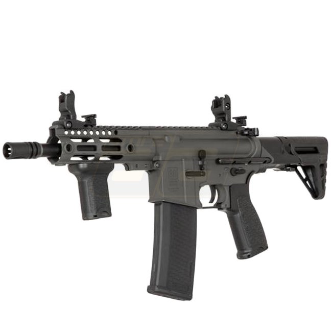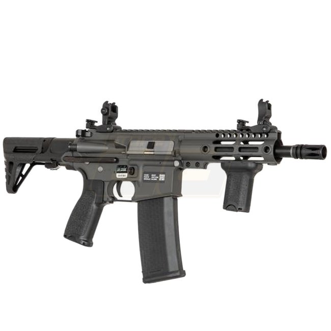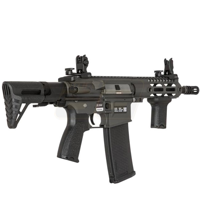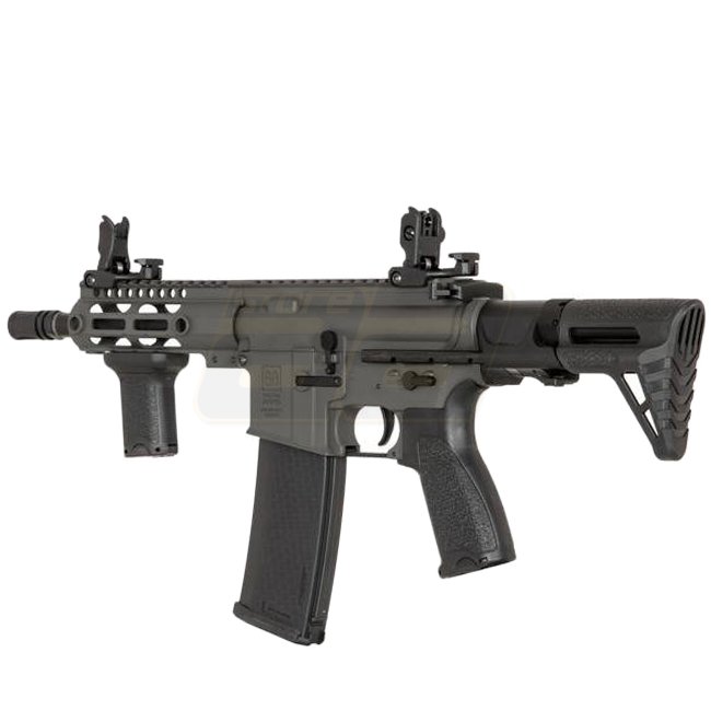 Specna Arms SA-E21 EDGE PDW AEG - Chaos Grey ist eine kompakte und leistungsstarke Airsoftwaffe mit Gearbox der Version 2, MOSFET-Technologie, Metallkonstruktion mit Polymer-Schaft und Griff, sowie einer Magazinfüllmenge von 125 Schuss. Perfekt für den Na
