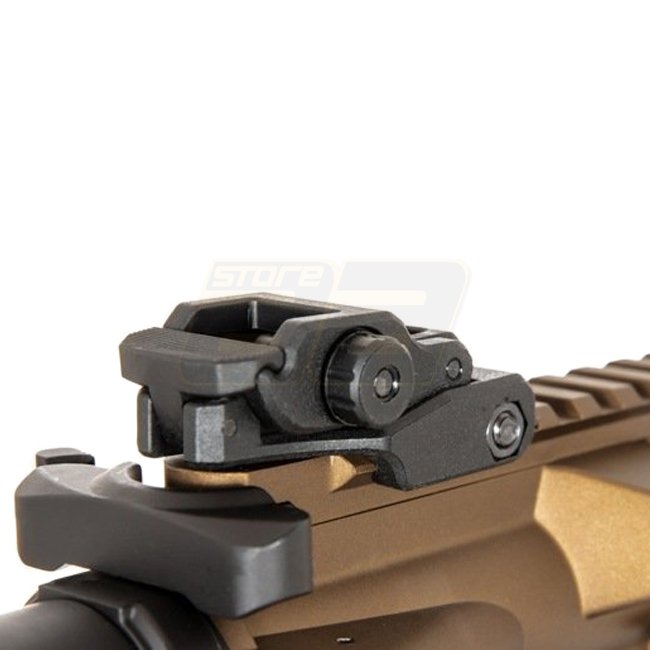 Die Specna Arms SA-E21 EDGE PDW AEG - Dual Tone Bronze ist eine hochleistungsfähige Airsoft-Waffe mit einem nanobeschichteten Metallgehäuse, einem vielseitigen "ORION" Getriebe mit schnellem Federwechsel-System, einem GATE X-ASR Mosfet und einem einstellb