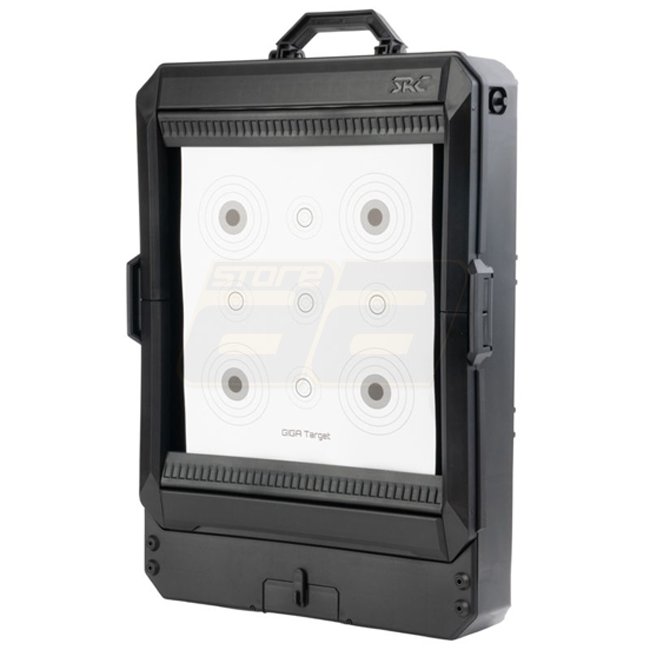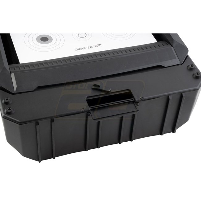 Giga Target Box von SRC, gefertigt aus robustem Polymerkomposit für den Innen‑ und Außenbereich. Mit klappbarem Tragegriff, Wandbohrungen hinten und internen Pufferstreifen zur Absorption von BB‑Aufprall und Vermeidung von Rückprall. Ausgestattet mit Boden‑Klappe und Auffangschale für einfache Reinigung. Inklusive Zielpapiere im Rollen‑ und B3‑Format.