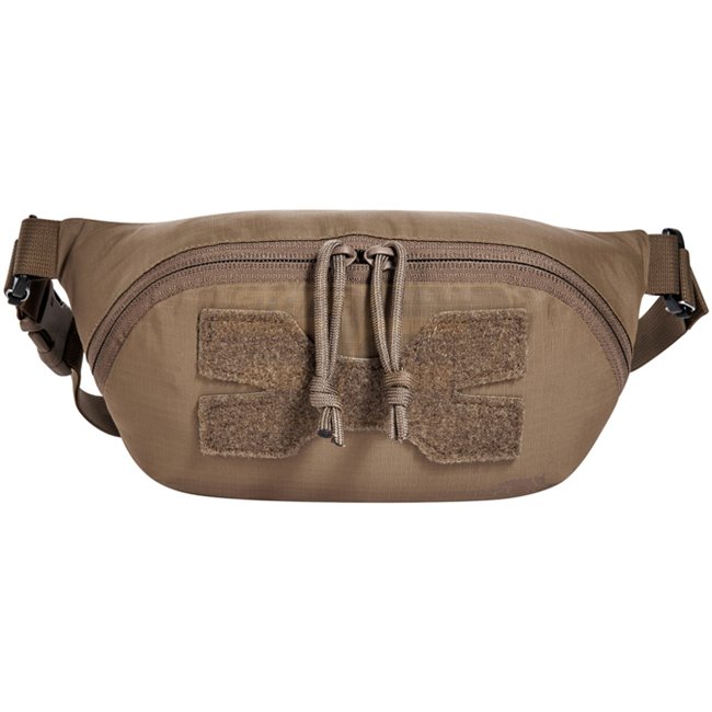 Leichte, flexible Hüfttasche mit Hauptfach und flachen Netz-Einsteckfächern sowie flachem Reißverschlussfach auf der Rückseite. Die X-förmige Klettfläche an der Front ermöglicht ein kompaktes Zusammenfalten. Der längenverstellbare, abnehmbare Hüftgurt ist mit Haken versehen und kann in MOLLE-Systeme eingehängt werden.